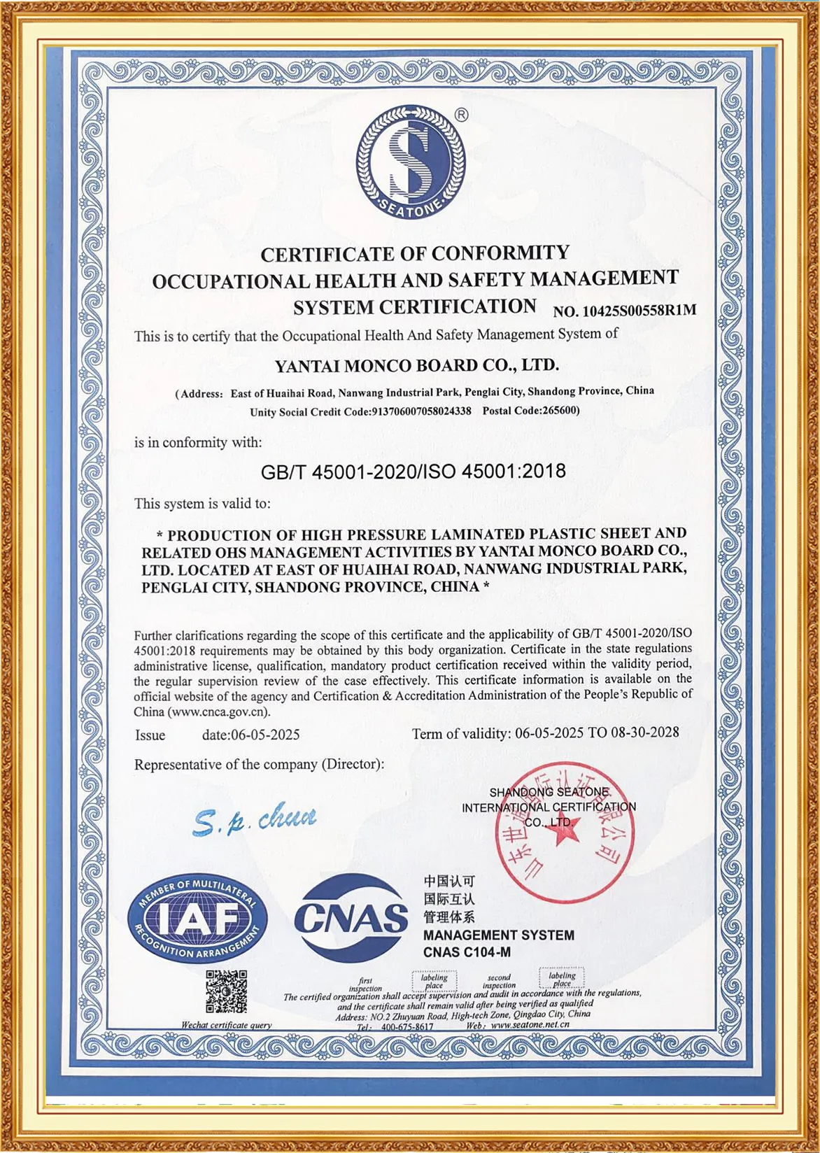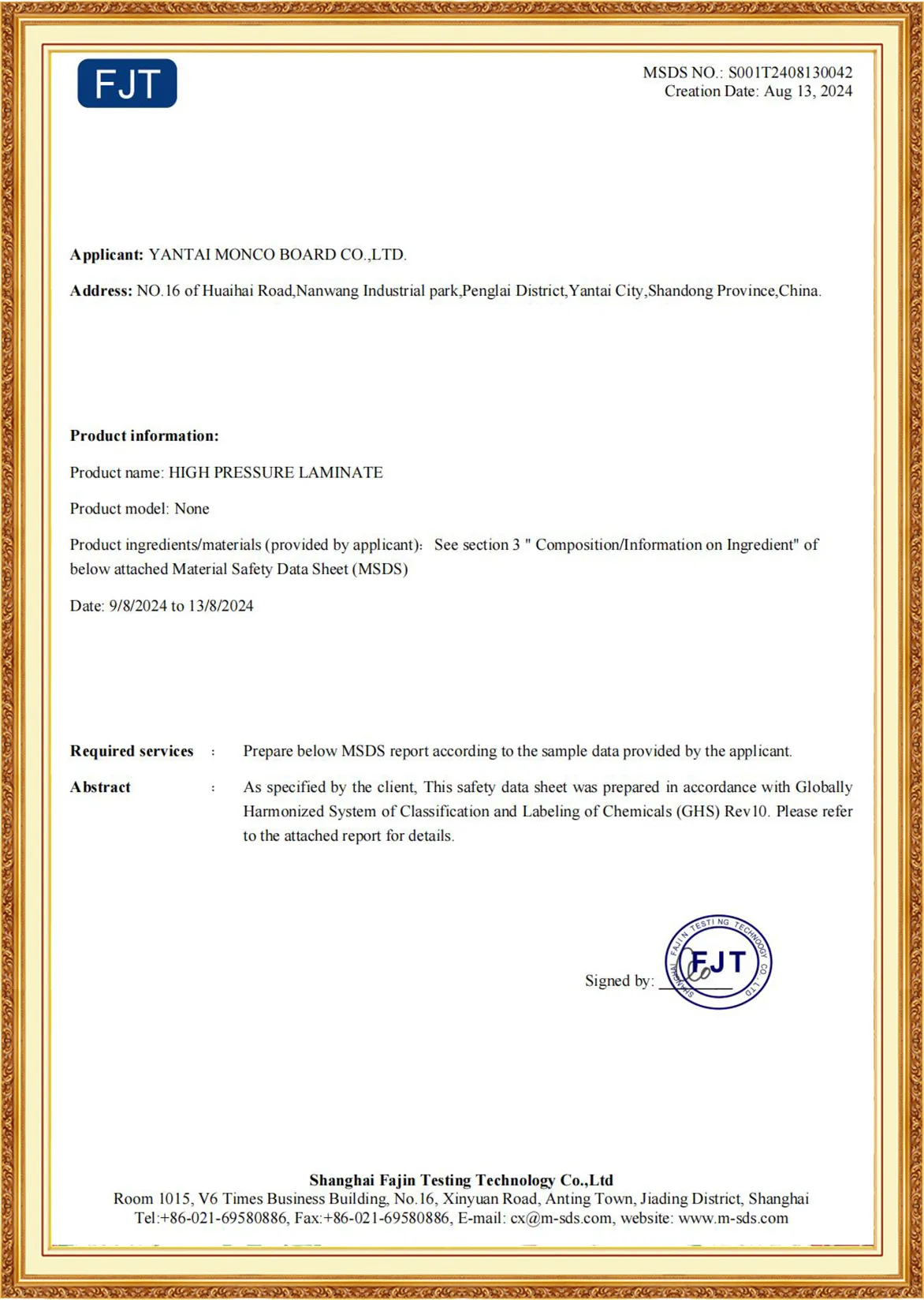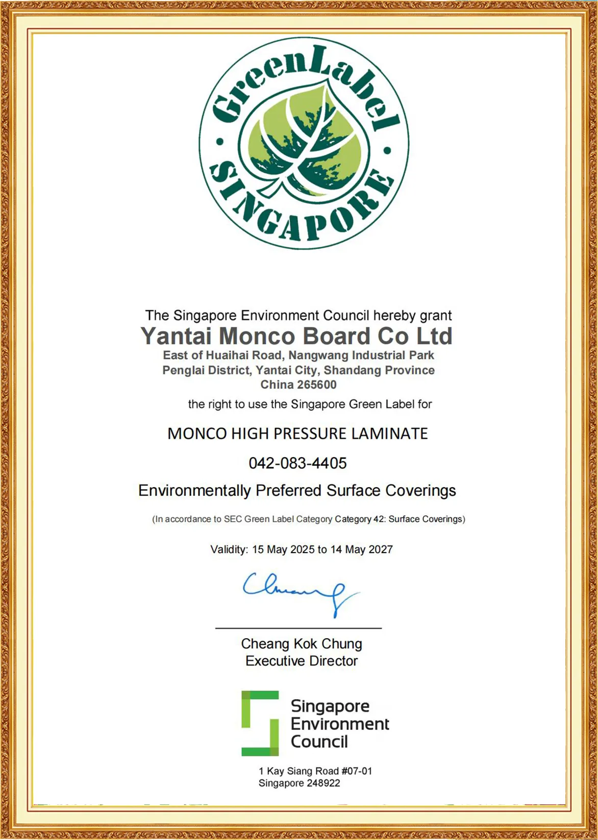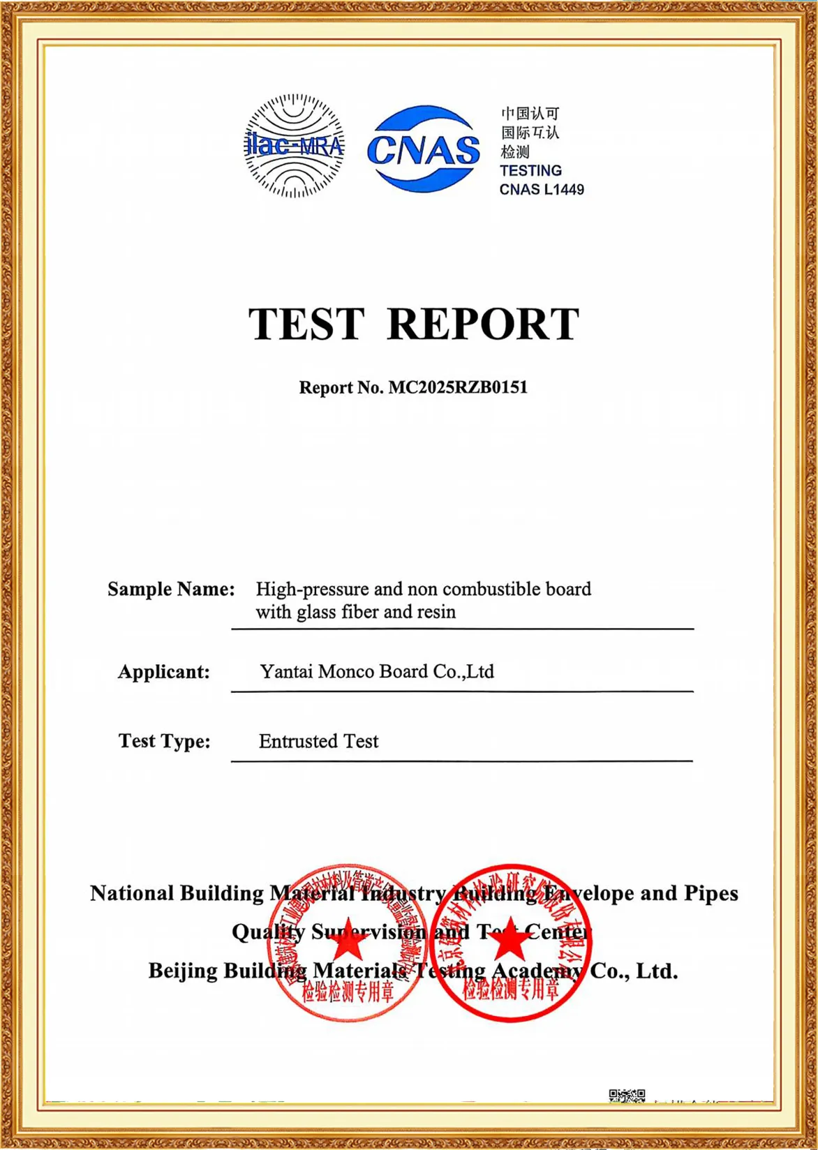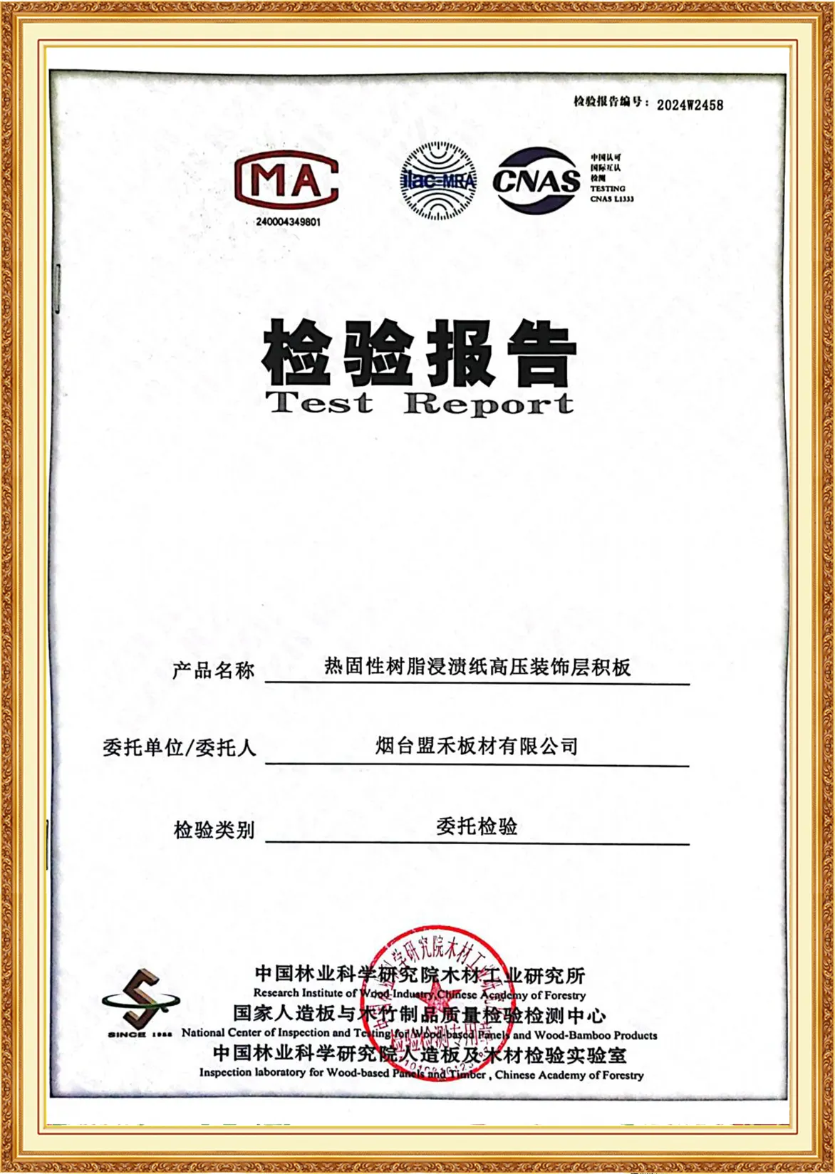 Yantai Monco Board Co., Ltd., has passed ISO9001:2015, ISO14001:2015, ISO45001:2020 And MONCO has FSC certification, CE certification and SGS certification, and we do test report annually.