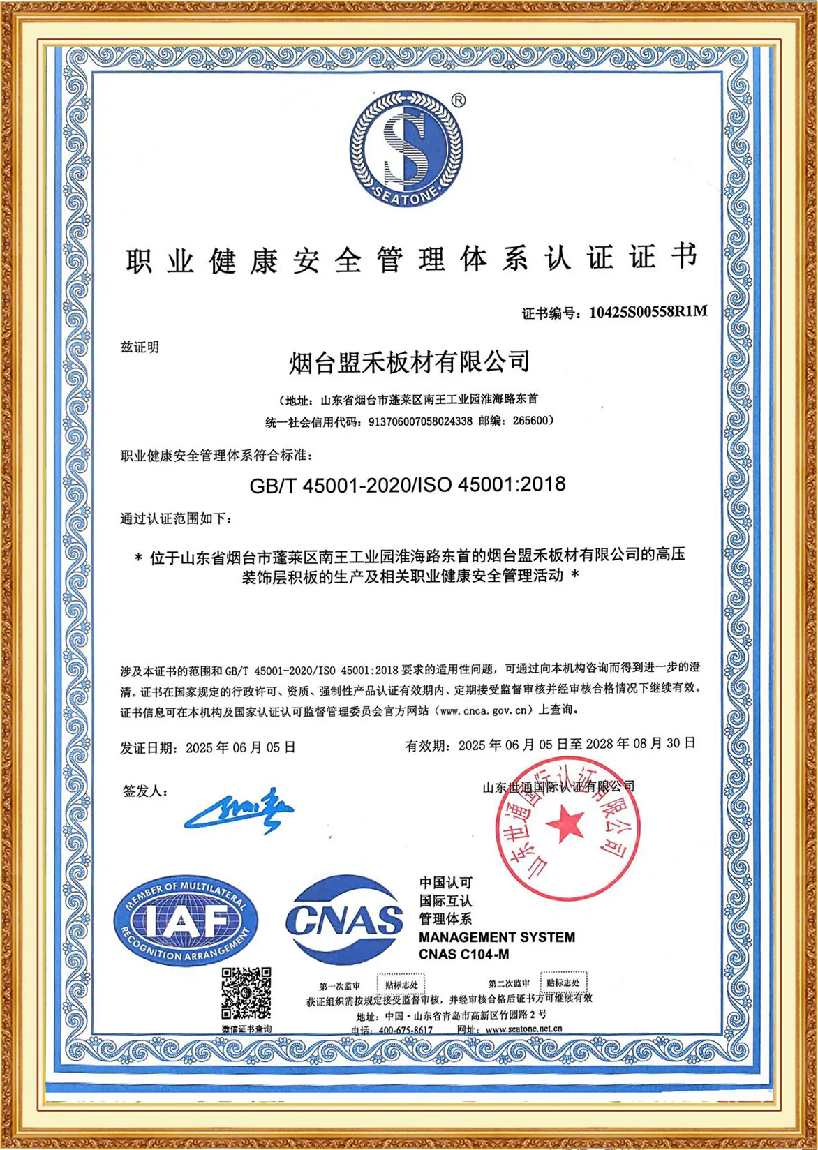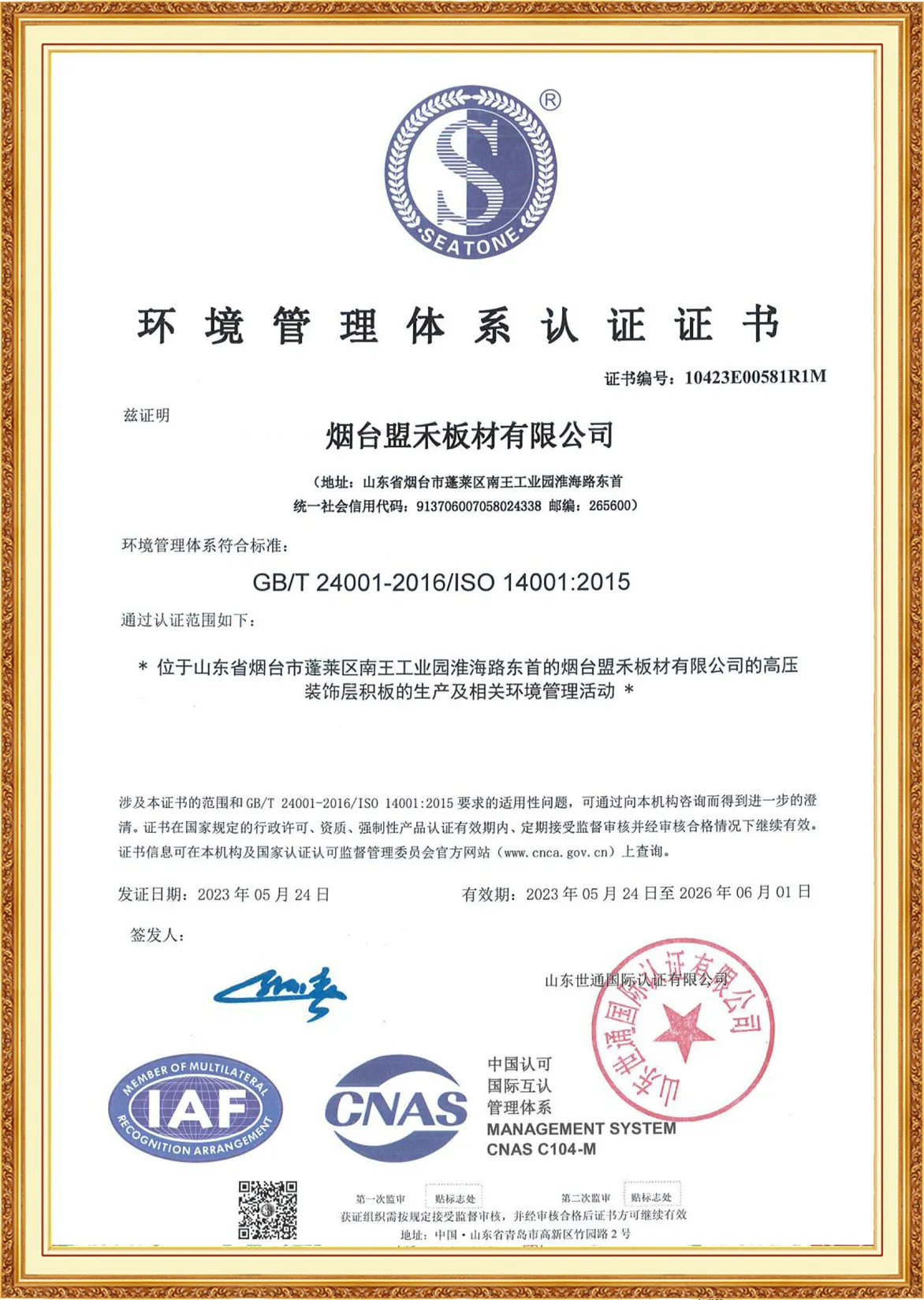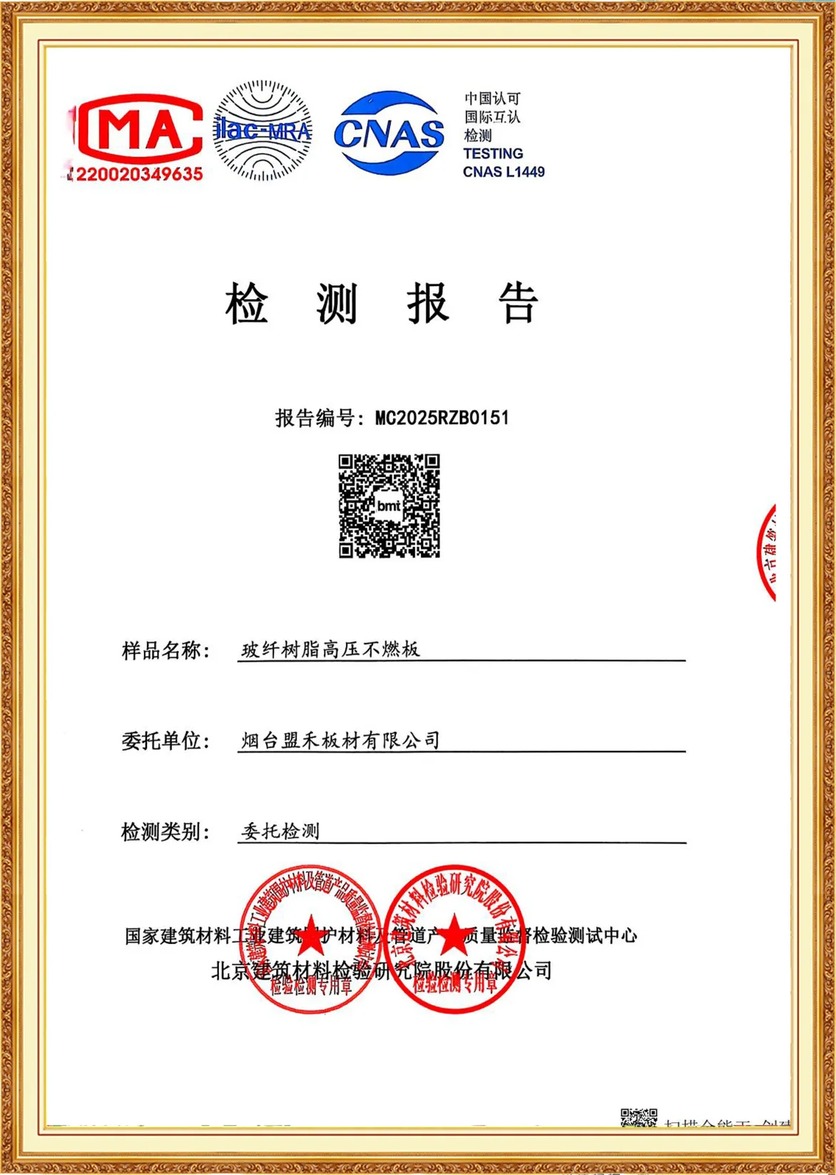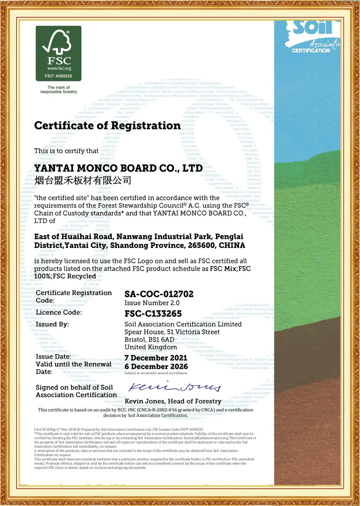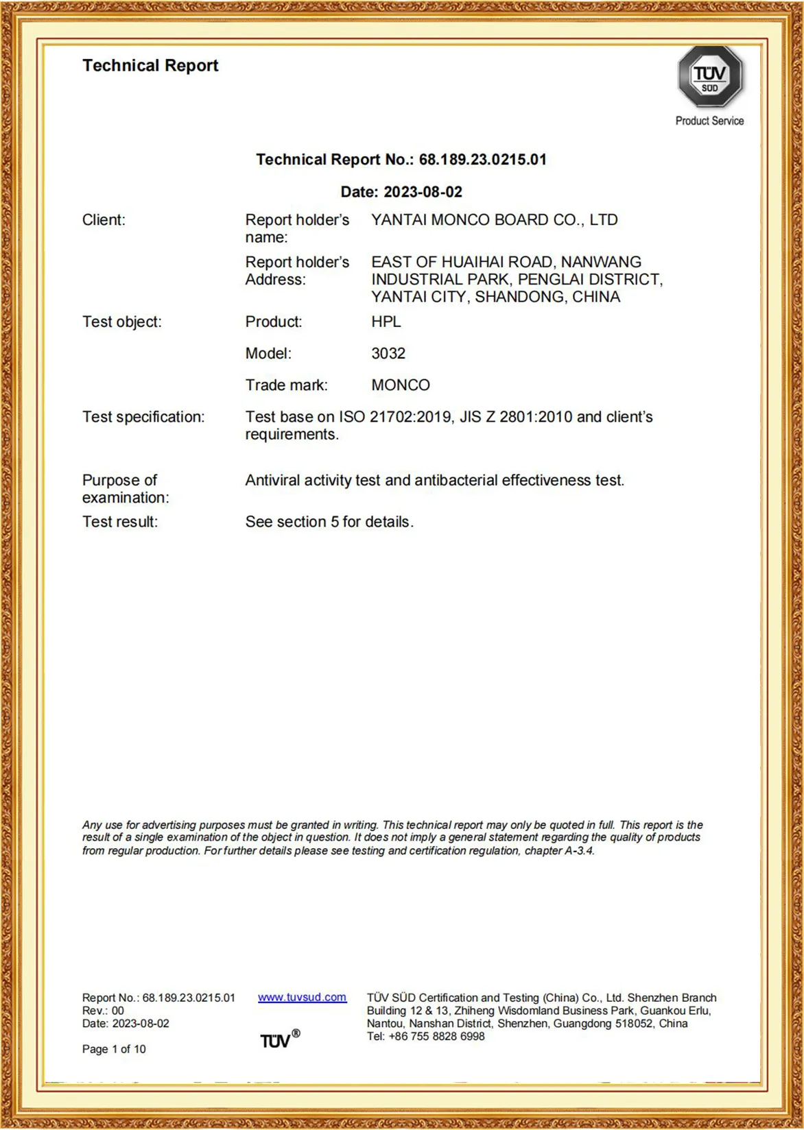 Yantai Monco Board Co., Ltd., has passed ISO9001:2015, ISO14001:2015, ISO45001:2020 And MONCO has FSC certification, CE certification and SGS certification, and we do test report annually.