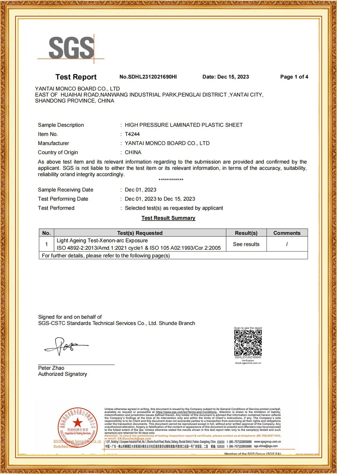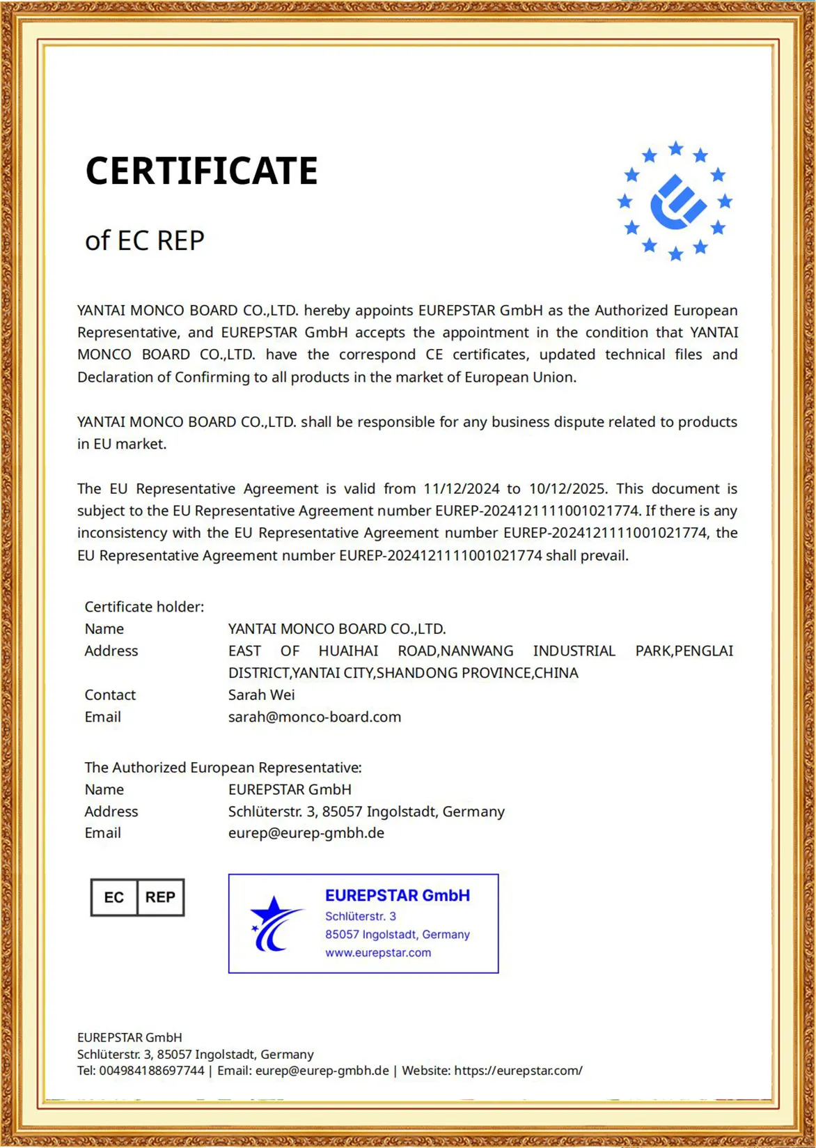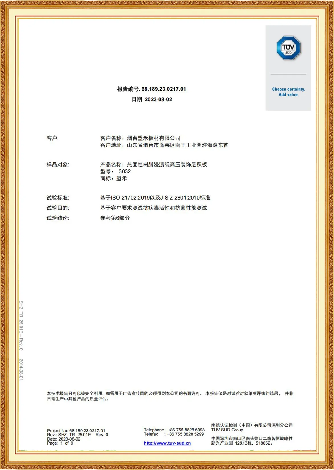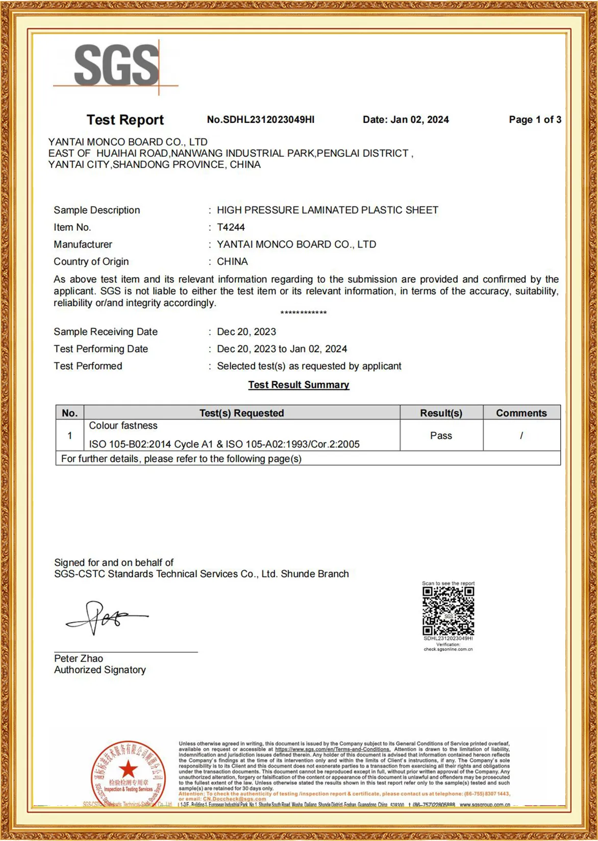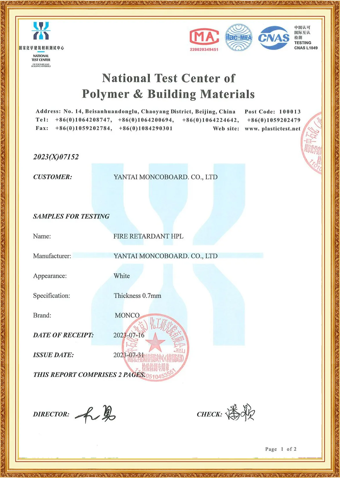 Yantai Monco Board Co., Ltd., has passed ISO9001:2015, ISO14001:2015, ISO45001:2020 And MONCO has FSC certification, CE certification and SGS certification, and we do test report annually.